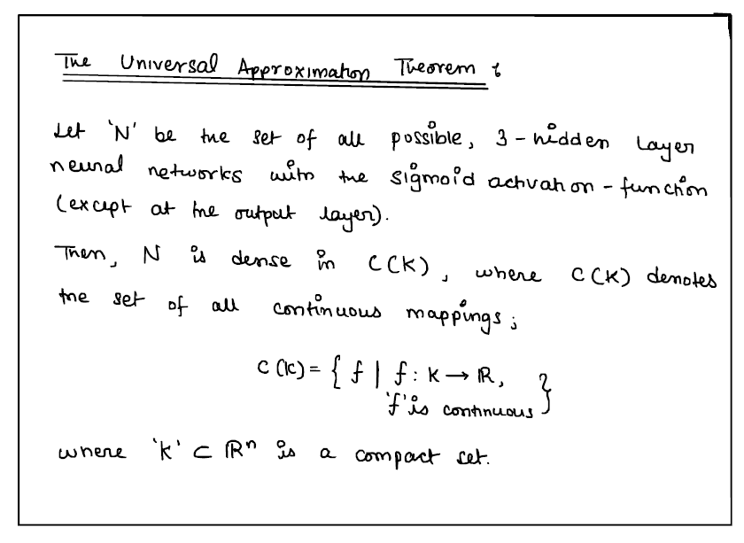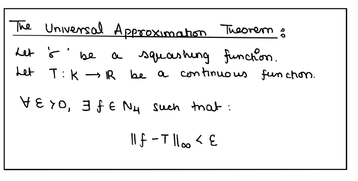 Well, the simple answer is that it is a mathematical theorem that shows us that a neural network of arbitrary width (or depth) is capable of approximating any function in the known universe. In layman's terms, it is mathematical proof that a neural network can learn anything in the known universe. Anything.
